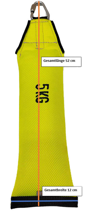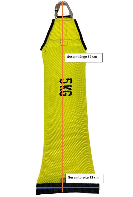 Aus robustem Schlauchmaterial, gefüllt mit Stahlgranulat (Ø 1,4 - 2,0 mm), mit eingenähtem Triangelschraubglied.