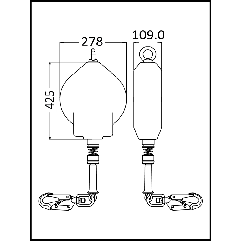 Höhensicherungsgerät mit Kunststoffgehäuse und Stahlseil